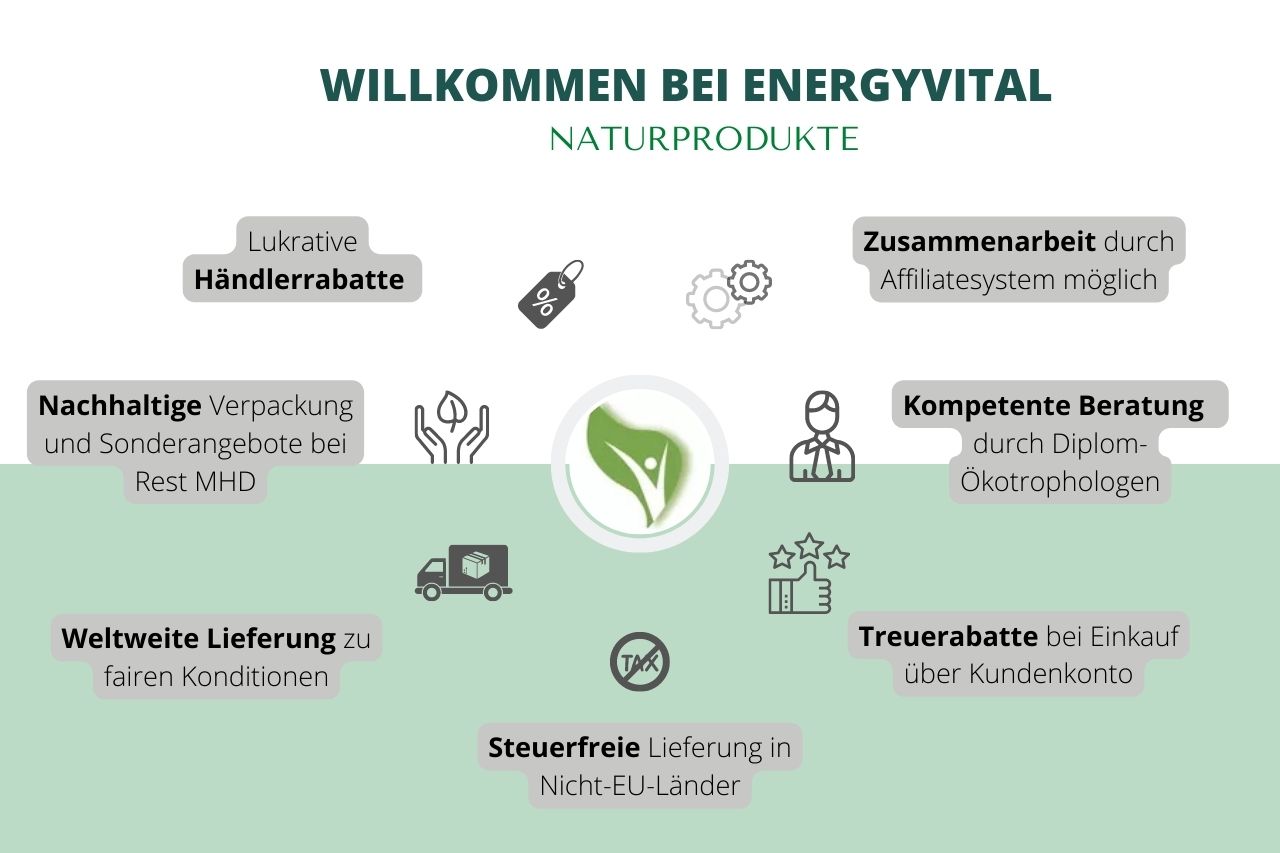Per Email an bestellung@energyvital.de. Per Telefon von 11-18 Uhr bestellen. Oder per Post an Energyvital GmbH, Talstr. 7, 01099 Dresden