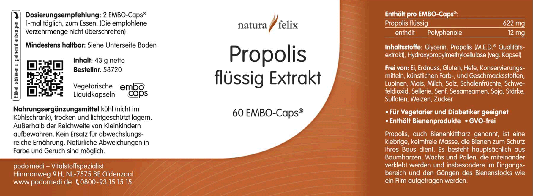 Glycerin, Propolis (M.E.D.-Qualitätsextrakt), Hydroxypropylmethylcellulose (veg. Kapsel).