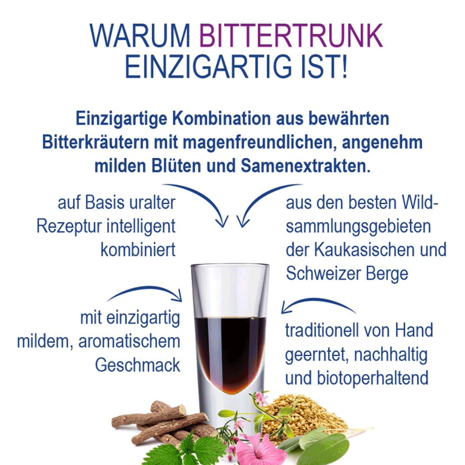 For the first time, the intake of bitter substances is so pleasant: the bitter drink contains 12 carefully selected herbal, flower and seed extracts - rich in numerous powerful bitter substances with a mild bitter flavour. Even our grandparents knew the power of bitter herbs. While the varieties of today have been largely freed of bitter substances for flavour reasons, their vegetables still contained them in large quantities. It is therefore all the more important to add bitter substances in a targeted manner. St Helia's bitter drink makes this particularly easy and tasty.