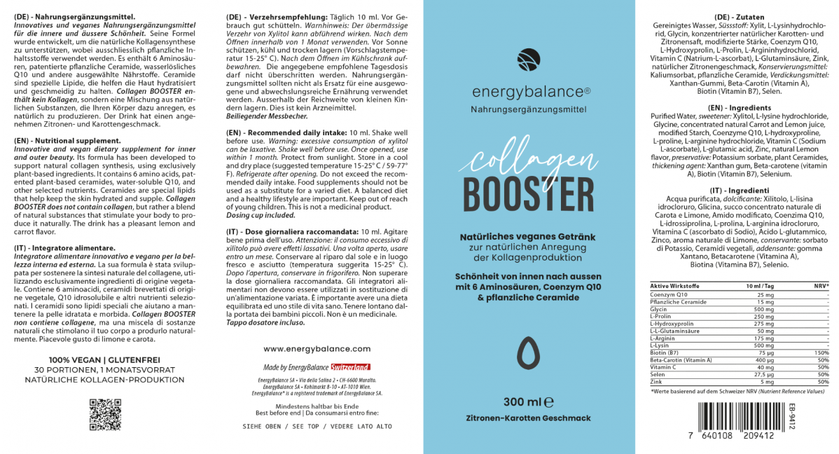 Take 10ml EnergyBalance® Collagen BOOSTER daily. Shake well before use.