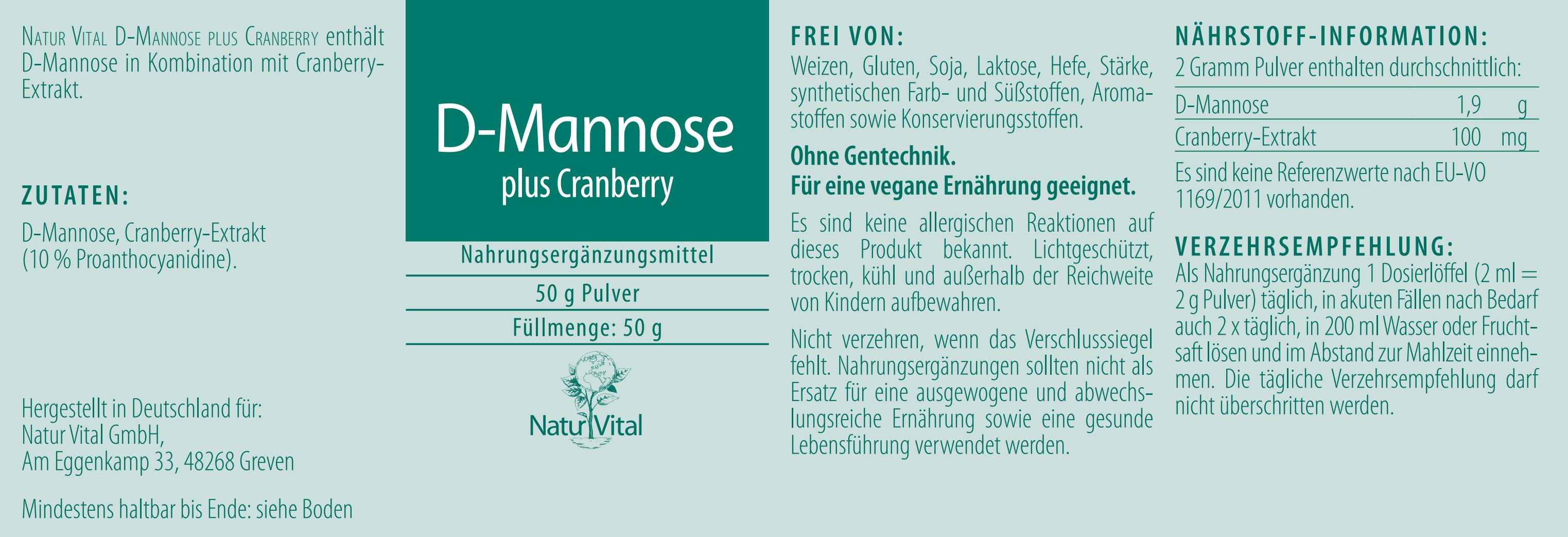 Manufacturer's address: Natur Vital GmbH, Am Eggenkamp 33, 48268 Greven, Germany. E-mail: info@naturvital.de.