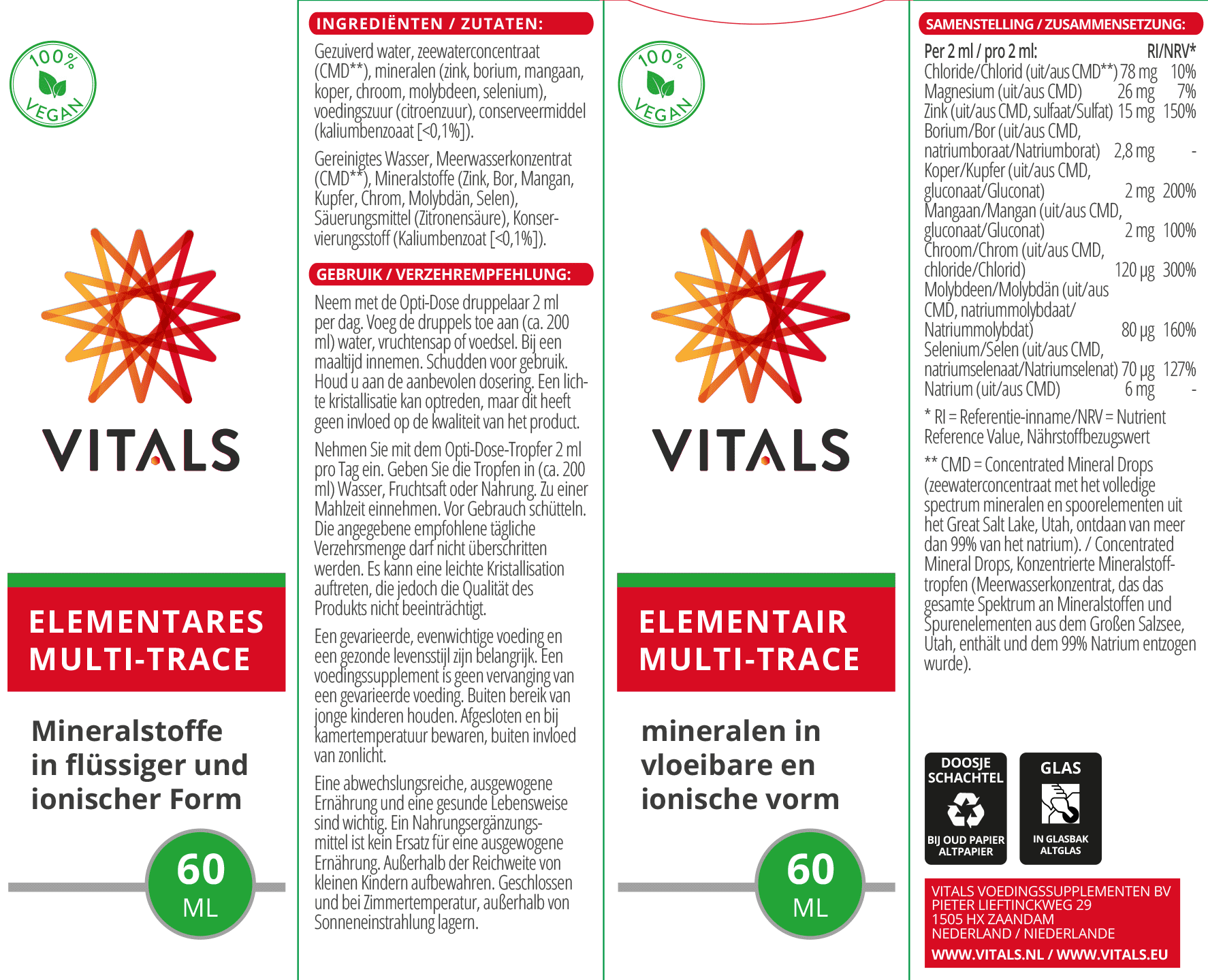 Anschrift des Herstellers: Vitals Voedingssupplementen BV, Pieter Lieftinckweg 29, 1505 HX Zaandam, Niederlande. E-Mail: kundendienst@vitals.eu.