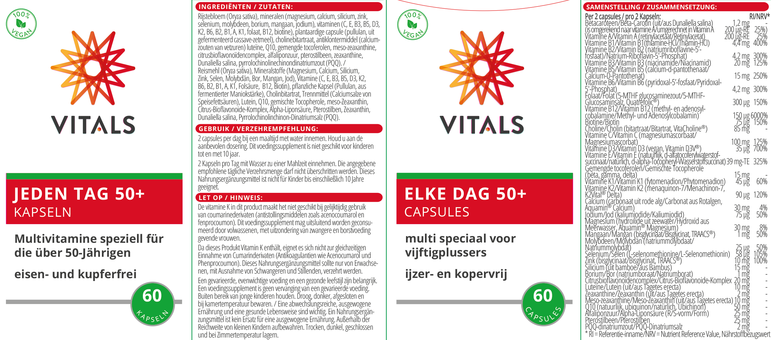 Anschrift des Herstellers: Vitals Voedingssupplementen BV, Pieter Lieftinckweg 29, 1505 HX Zaandam, Niederlande. E-Mail: kundendienst@vitals.eu.