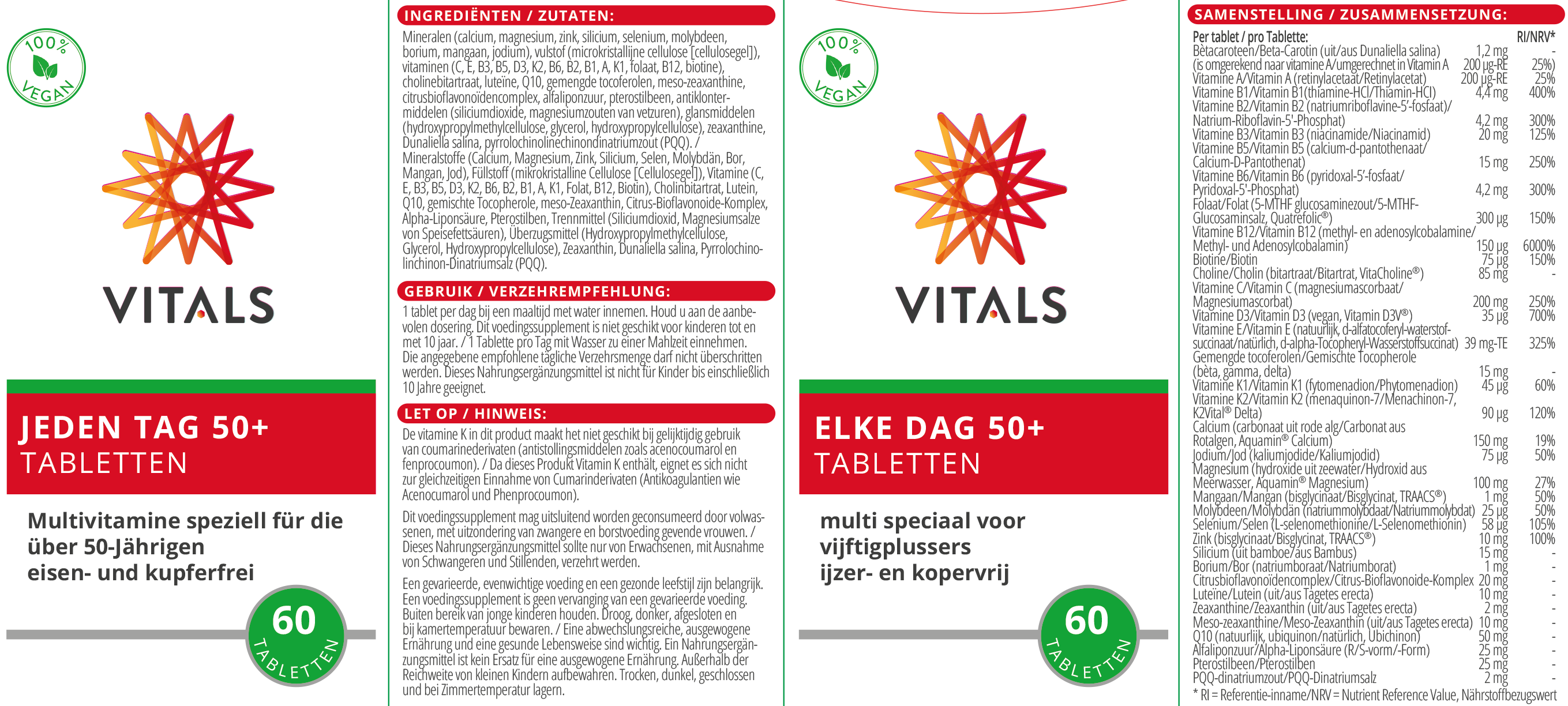 Anschrift des Herstellers: Vitals Voedingssupplementen BV, Pieter Lieftinckweg 29, 1505 HX Zaandam, Niederlande. E-Mail: kundendienst@vitals.eu.