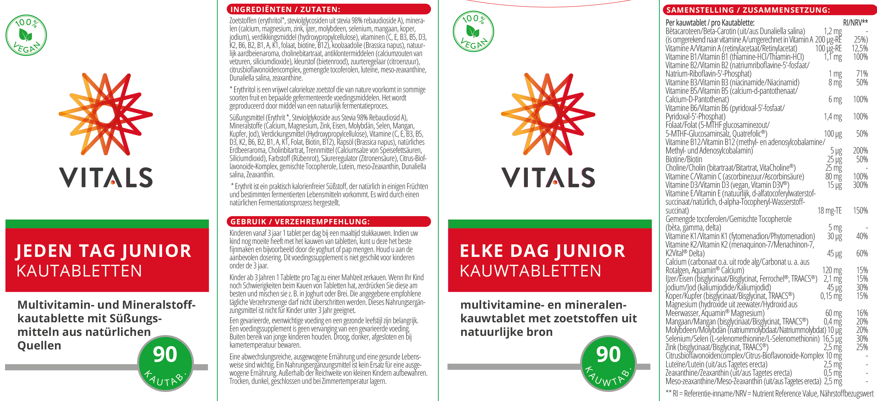 Anschrift des Herstellers: Vitals Voedingssupplementen BV, Pieter Lieftinckweg 29, 1505 HX Zaandam, Niederlande. E-Mail: kundendienst@vitals.eu.