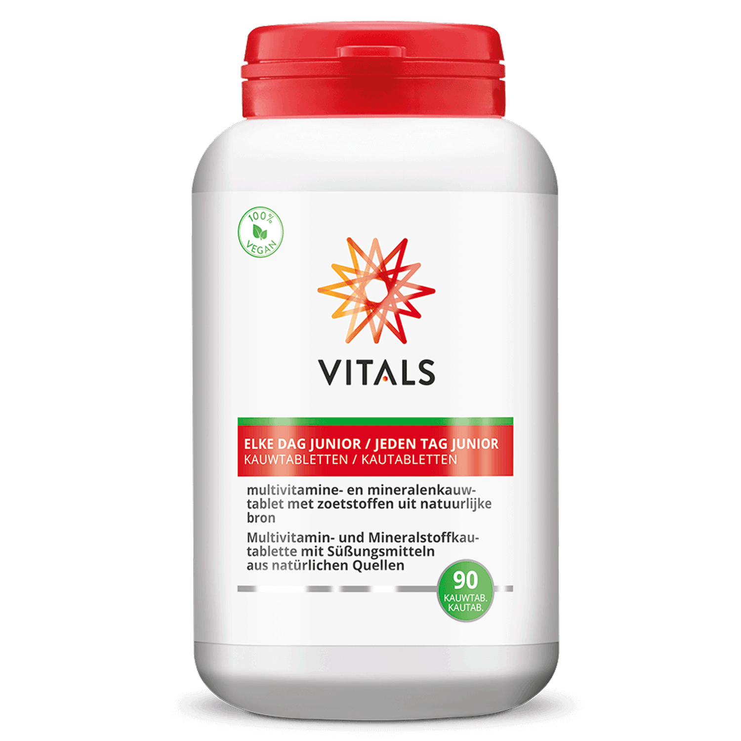 Jeden Tag Junior in the shape of a small elephant has a strawberry flavour. The product is based on the latest scientific findings and is aligned with current data on nutritional status in Western Europe as well as the optimum amount to be consumed per nutrient. The composition, dosage and absorbability make Every Day Junior unique. The chewable tablet contains almost the same high-quality ingredients as Every Day for adults, but the dose has been adapted to the needs of (young) children. One tablet provides 15 μg of vitamin D3 (therefore separate vitamin D drops are unnecessary). It also contains 60 mg magnesium and 120 mg calcium from natural sources. To summarise, Jeden Tag Junior performs excellently compared to other multivitamins for children!