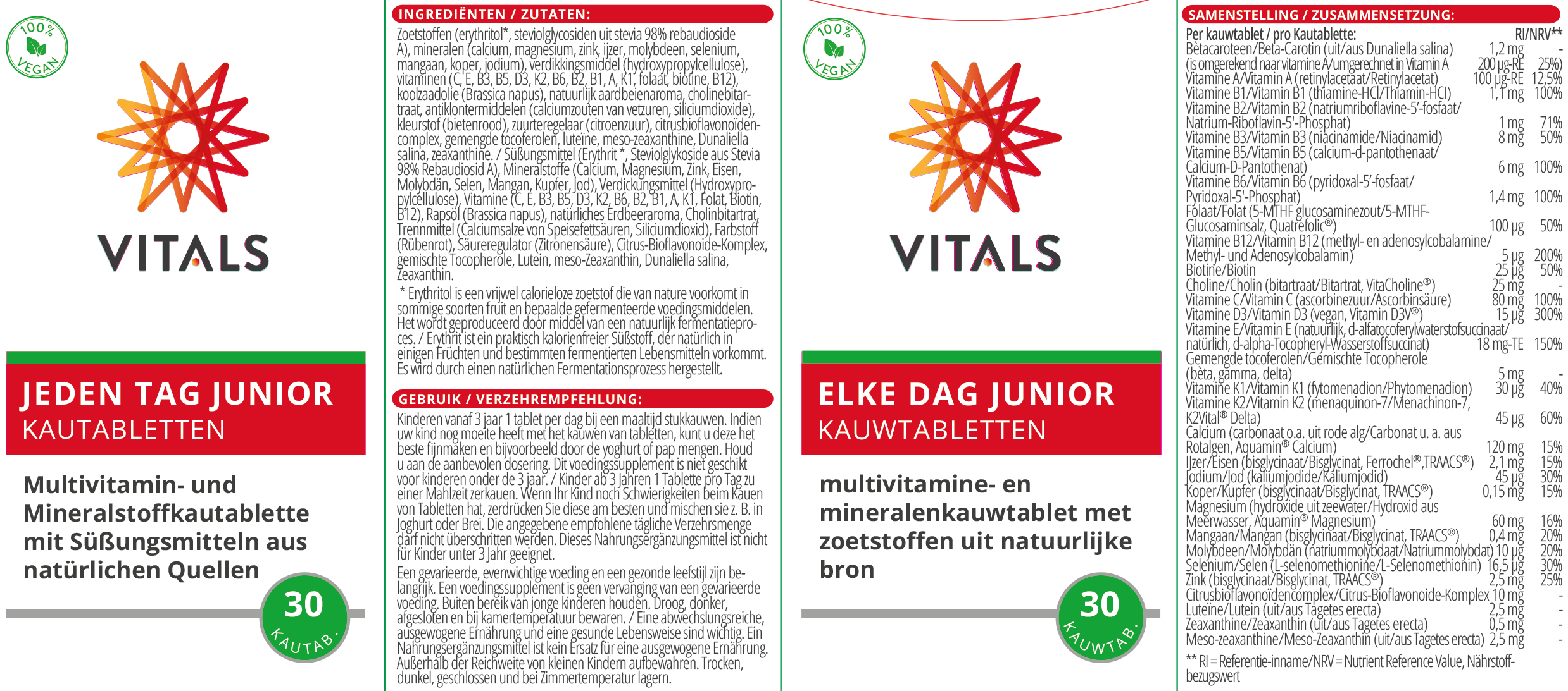 Anschrift des Herstellers: Vitals Voedingssupplementen BV, Pieter Lieftinckweg 29, 1505 HX Zaandam, Niederlande. E-Mail: kundendienst@vitals.eu.