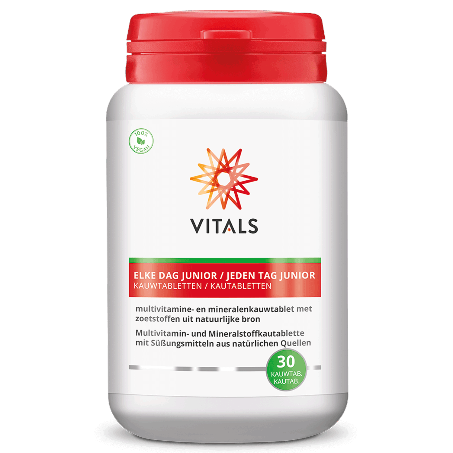 Jeden Tag Junior in the shape of a small elephant has a strawberry flavour. The product is based on the latest scientific findings and is aligned with current data on nutritional status in Western Europe as well as the optimum amount to be consumed per nutrient. The composition, dosage and absorbability make Every Day Junior unique. The chewable tablet contains almost the same high-quality ingredients as Every Day for adults, but the dose has been adapted to the needs of (young) children. One tablet provides 15 μg of vitamin D3 (therefore separate vitamin D drops are unnecessary). It also contains 60 mg magnesium and 120 mg calcium from natural sources. To summarise, Jeden Tag Junior performs excellently compared to other multivitamins for children!