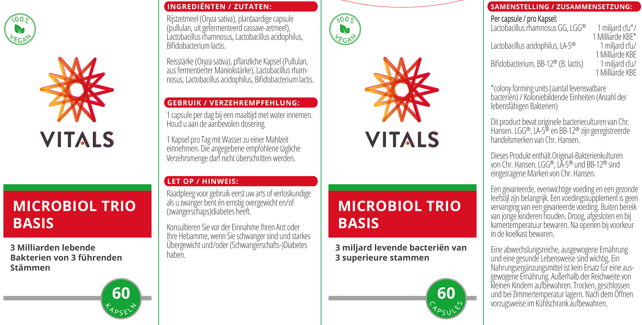 This product combines the well-known strains Lactobacillus acidophilus, LA-5, Bifidobacterium lactis, BB-12, Lactobacillus rhamnosus and GG, by far the best known strain. The result is an outstanding trio. Microbiol Trio Basis contains 3 billion CFU (colony forming units, or the number of viable bacteria that can multiply and form a colony). Also available as Microbiol Trio Platinum with 15 billion CFU.