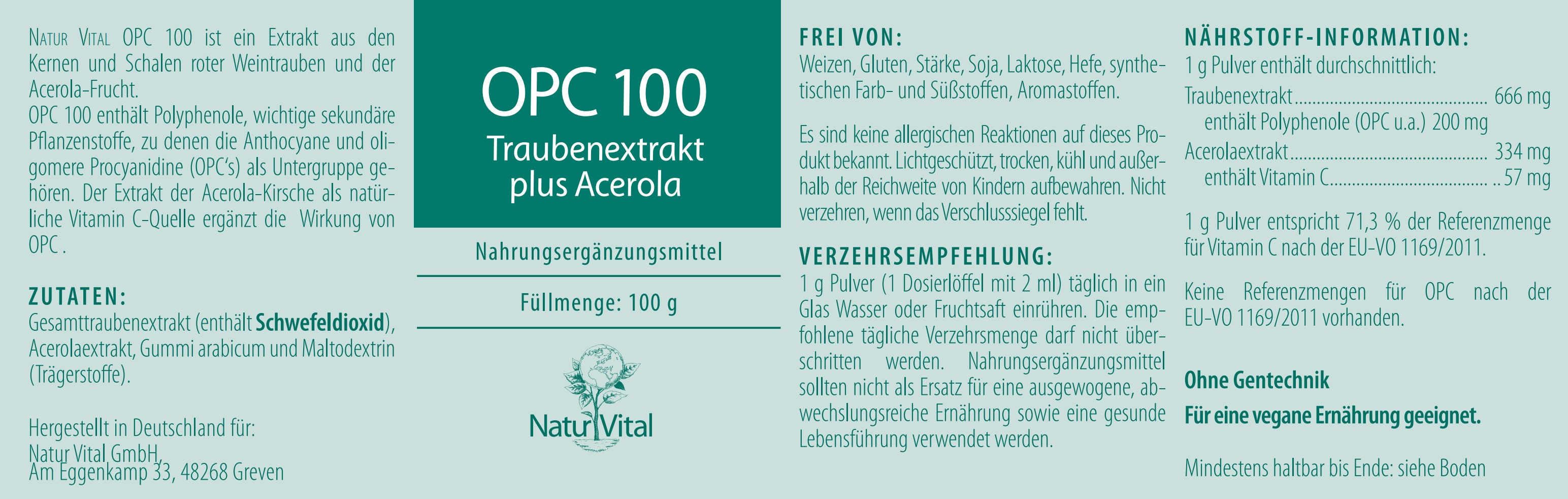 Natur Vital OPC 100 is an extract from the seeds and skins of red grapes and the acerola fruit.
