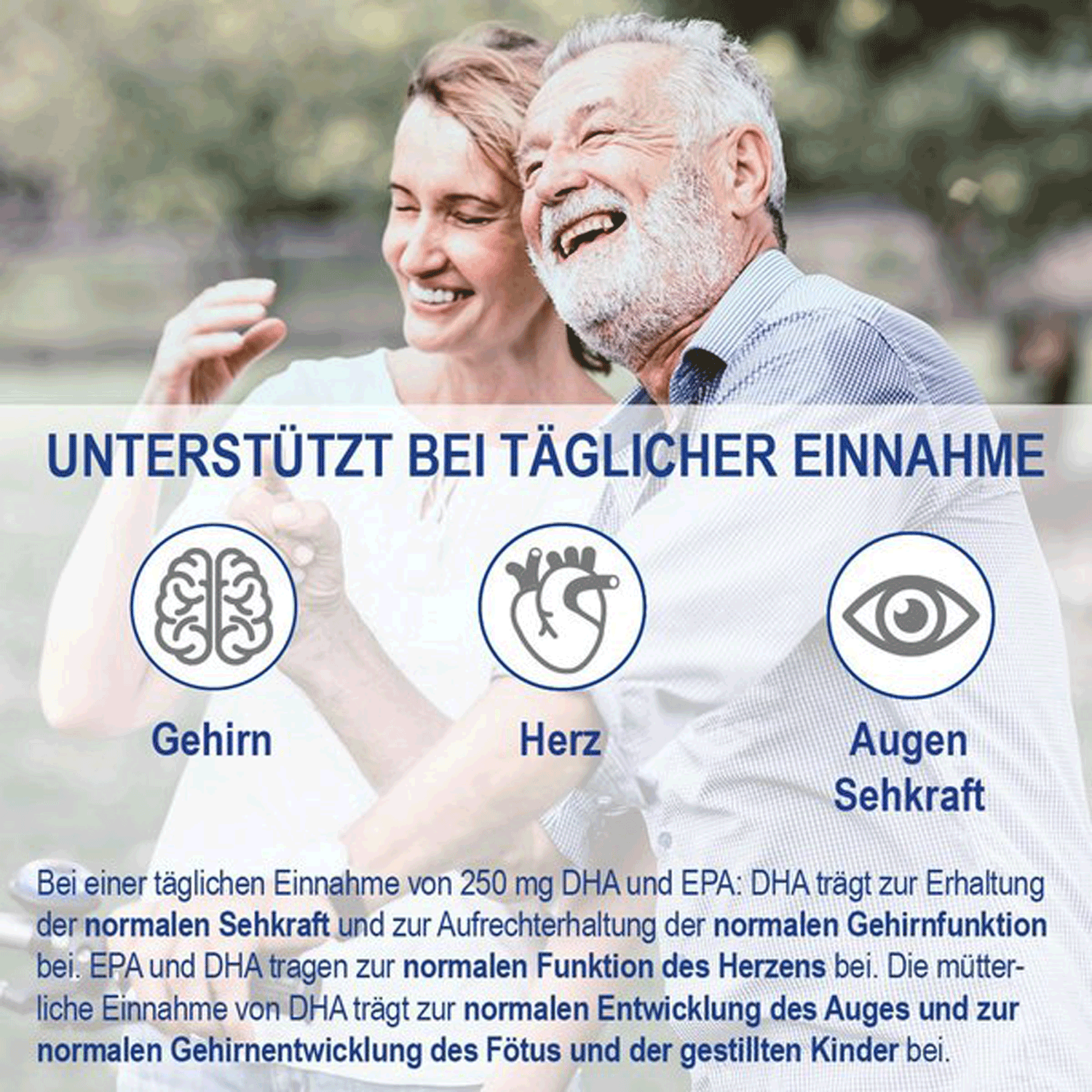 - EPA and DHA contribute to normal heart function (these positive effects occur with a daily intake of 250 mg DHA + EPA)