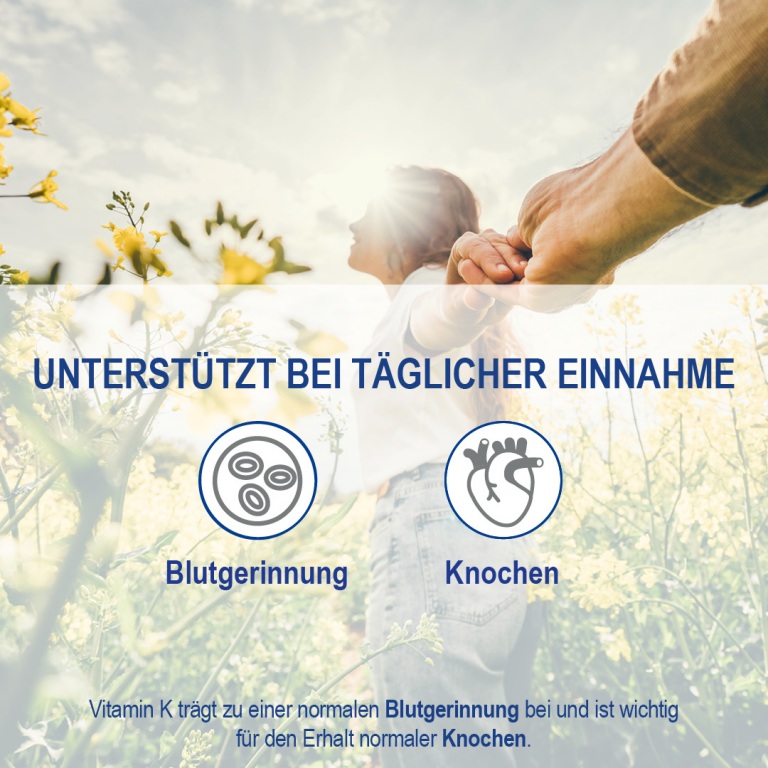 Vitamin K2 from St. Helia is characterised by its very high bioavailability and is also completely vegan. The menaquinone MK 7 it contains is a form of vitamin K2 that is particularly well absorbed by the body. This effect is further enhanced by the combination with vitamin A