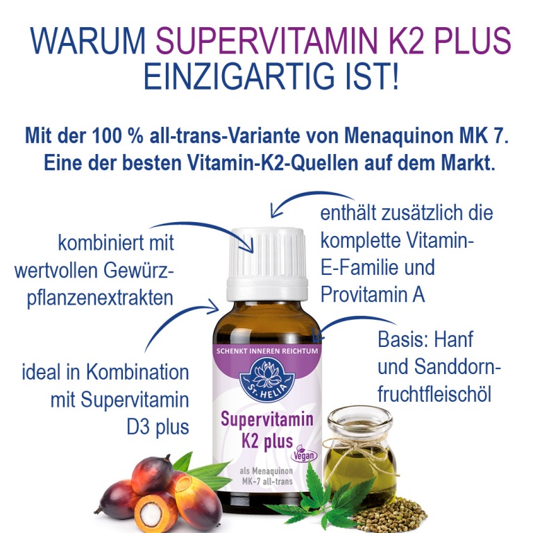 St. Helia Supervitamin K2 contains only the pure - biologically active - menaquinone MK 7 in the high-quality all-trans form.