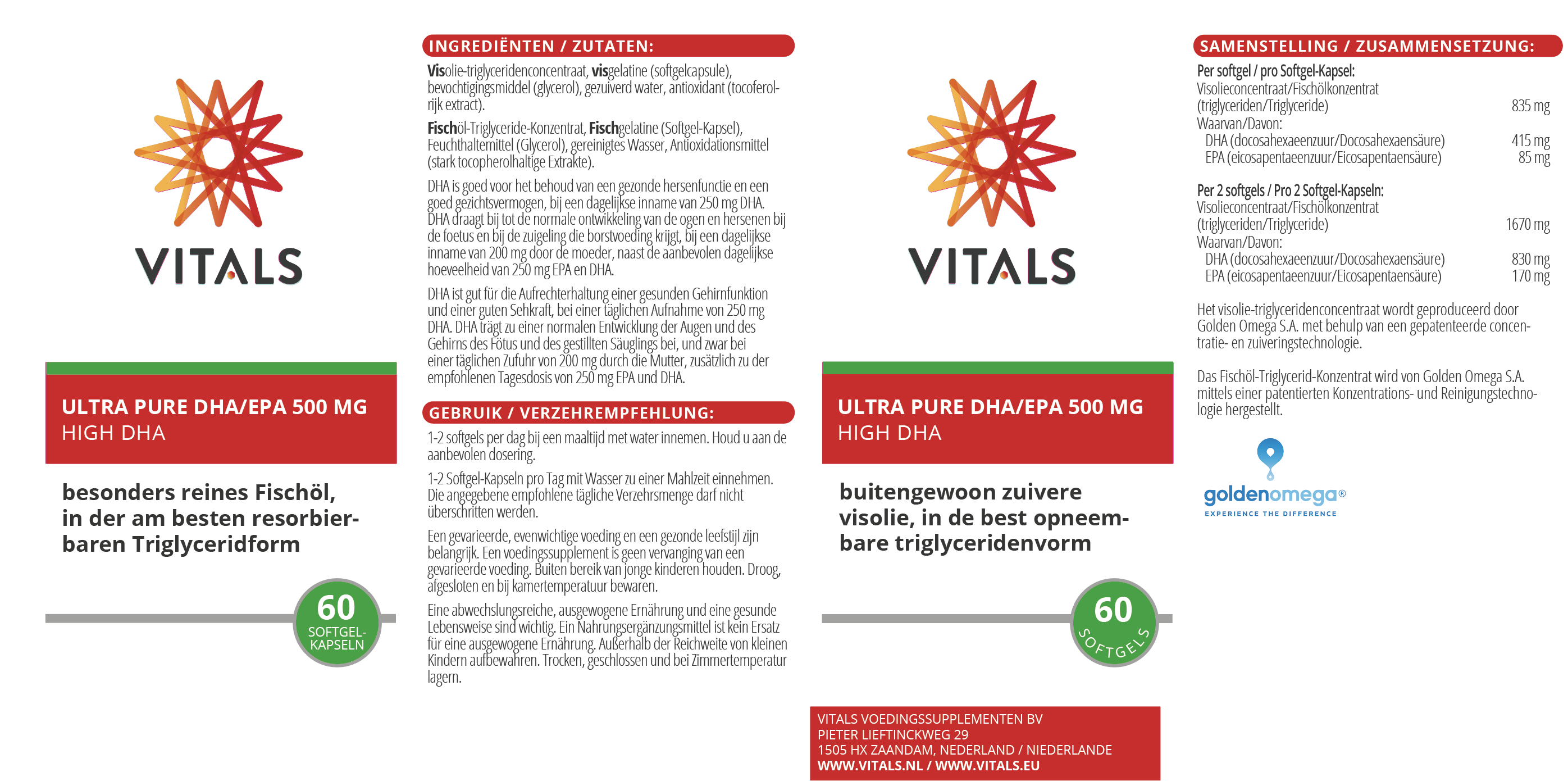 Anschrift des Herstellers: Vitals Voedingssupplementen BV, Pieter Lieftinckweg 29, 1505 HX Zaandam, Niederlande. E-Mail: kundendienst@vitals.eu.