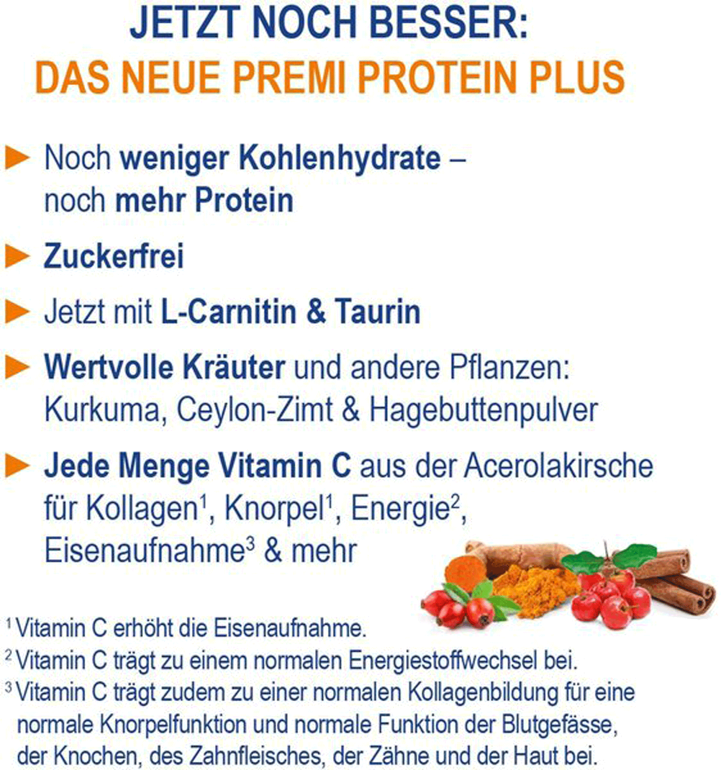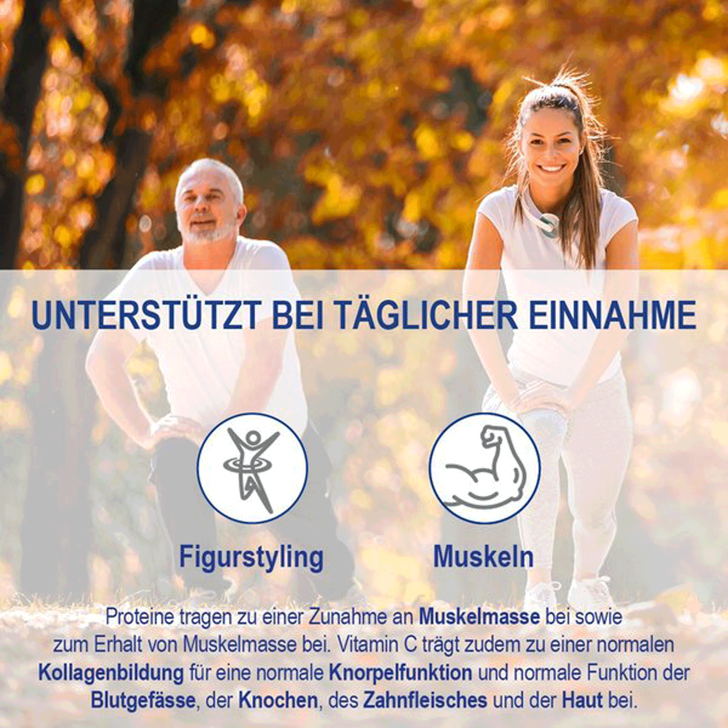 Acerola cherry concentrate, rose hip powder, cinnamon and turmeric as plant-based supporters, inulin as a natural prebiotic and the amino acids taurine and L-carnitine perfectly round off the vegan pea protein and oat protein concentrate with cordyceps extract, providing valuable impetus for your figure, muscles / collagen and boosting your metabolism!