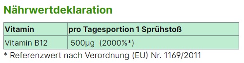 A major advantage of B12 in spray form is that a large proportion of the vitamin B12 is absorbed immediately via the oral mucosa.