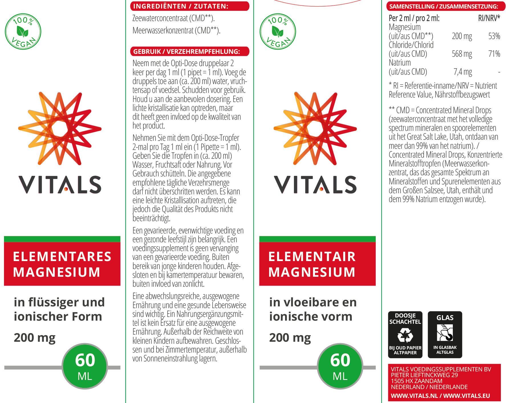 Anschrift des Herstellers: Vitals Voedingssupplementen BV, Pieter Lieftinckweg 29, 1505 HX Zaandam, Niederlande. E-Mail: kundendienst@vitals.eu.