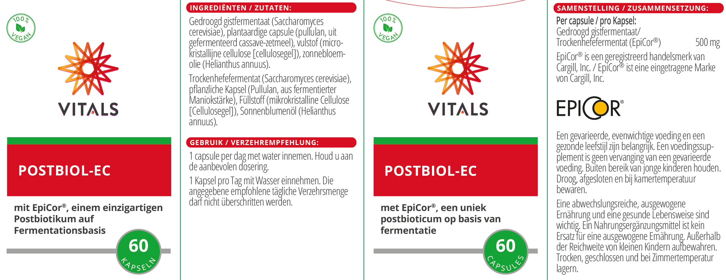 Vitals presenta un nuovo prodotto contenente il postbiotico più conosciuto al mondo. L'ingrediente EpiCor® di Vitals Postbiol-EC è caratterizzato da una composizione nutritiva unica creata dalla fermentazione dei nutrienti in un mezzo nutritivo naturale utilizzando il lievito del panettiere. EpiCor® è il prodotto di un'azienda con oltre 75 anni di esperienza nei processi di fermentazione naturale. È un postbiotico, cioè un prodotto costituito da microrganismi non viventi. Oltre ai metaboliti, EpiCor® contiene anche cellule inattive (non viventi) di lievito di birra che offrono un valore aggiunto. Può quindi essere considerato un fermentato cosiddetto "integrale", in cui tutti i componenti del processo di fermentazione sono conservati nel prodotto finale. Un postbiotico può essere combinato in modo eccellente con un prebiotico o un probiotico, ma è anche adatto come prodotto a sé stante se questi ultimi sono meno adatti.