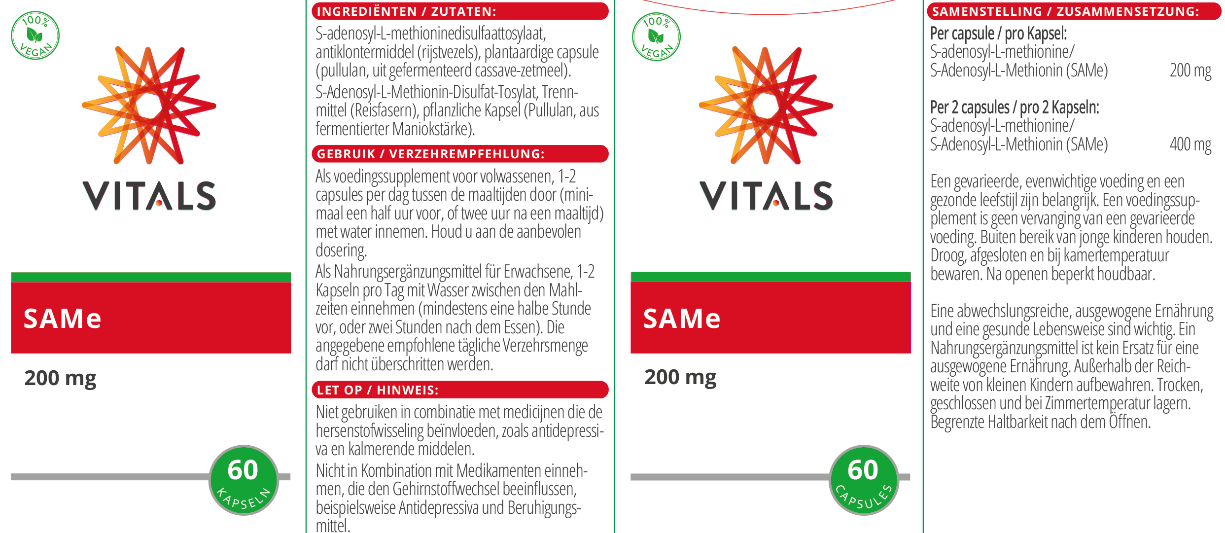 Anschrift des Herstellers: Vitals Voedingssupplementen BV, Pieter Lieftinckweg 29, 1505 HX Zaandam, Niederlande. E-Mail: kundendienst@vitals.eu.