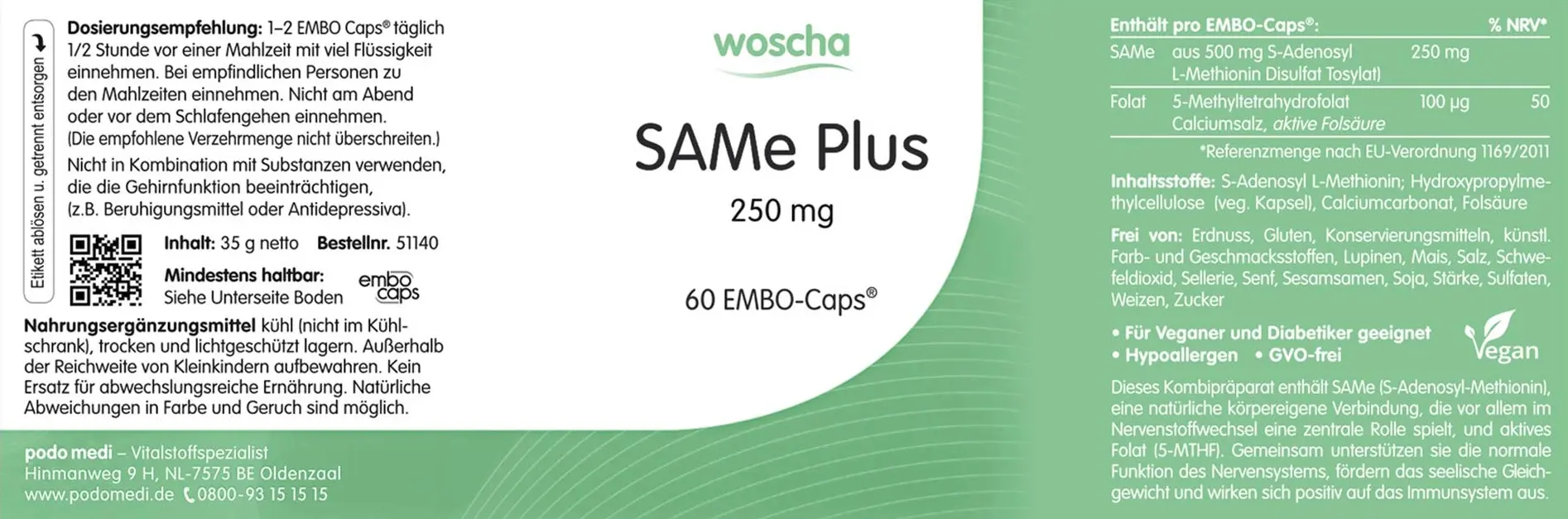 WOSCHA SAMe Plus è a base vegetale ed è molto ben tollerato perché non contiene altri additivi.