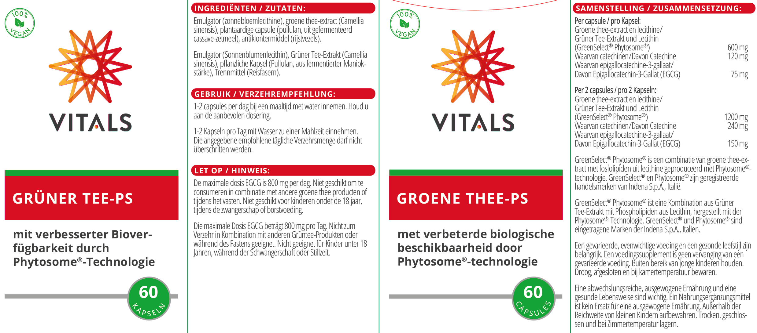 Anschrift des Herstellers: Vitals Voedingssupplementen BV, Pieter Lieftinckweg 29, 1505 HX Zaandam, Niederlande. E-Mail: kundendienst@vitals.eu.