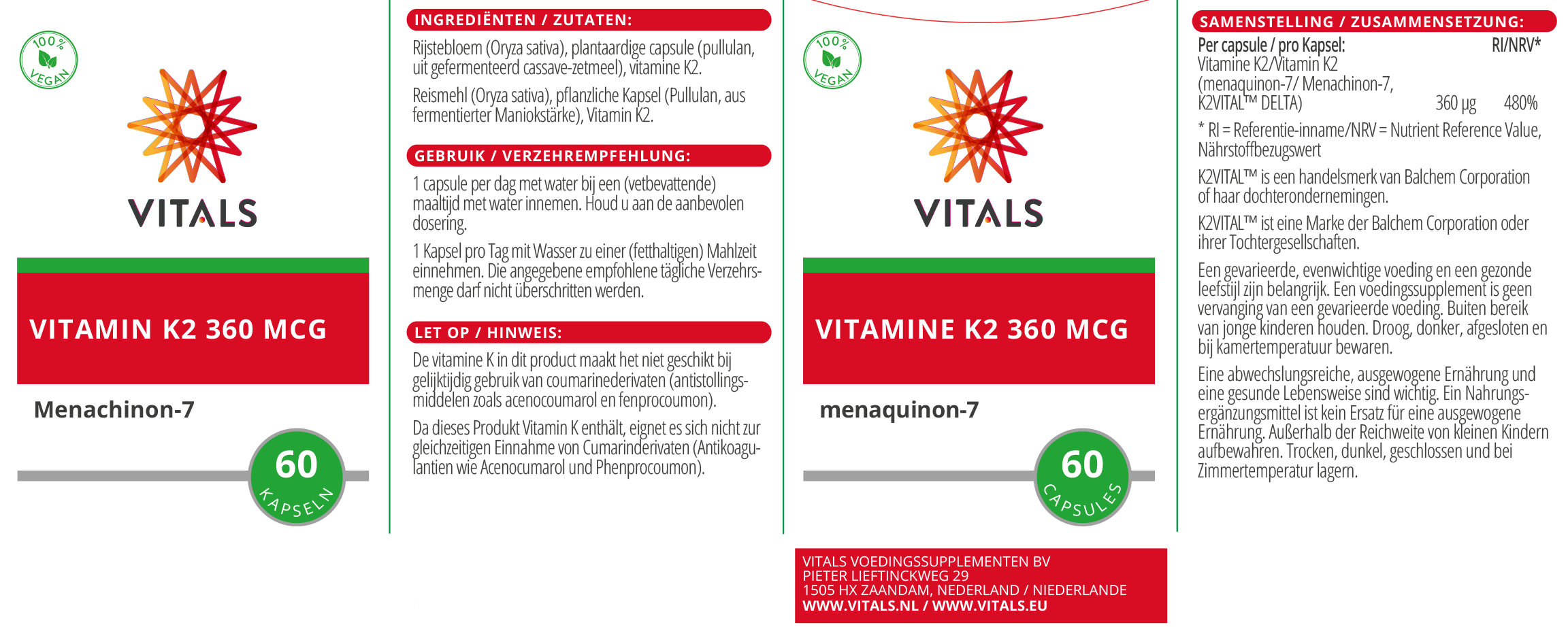 Anschrift des Herstellers: Vitals Voedingssupplementen BV, Pieter Lieftinckweg 29, 1505 HX Zaandam, Niederlande. E-Mail: kundendienst@vitals.eu.