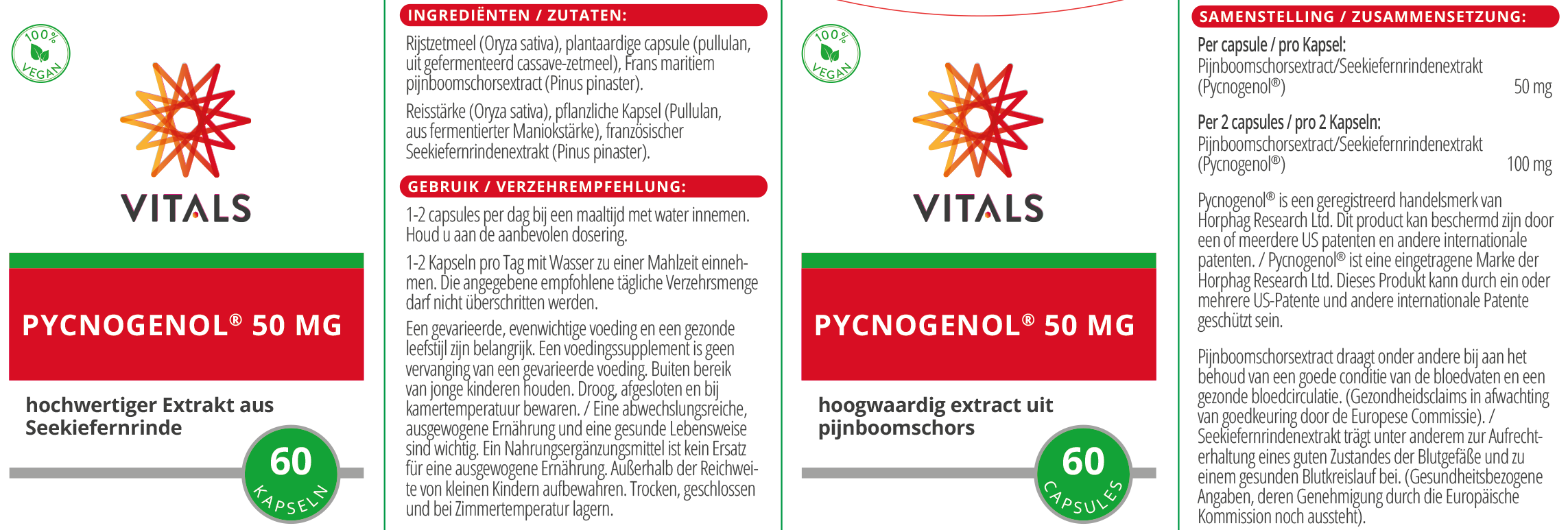 Anschrift des Herstellers: Vitals Voedingssupplementen BV, Pieter Lieftinckweg 29, 1505 HX Zaandam, Niederlande. E-Mail: kundendienst@vitals.eu.