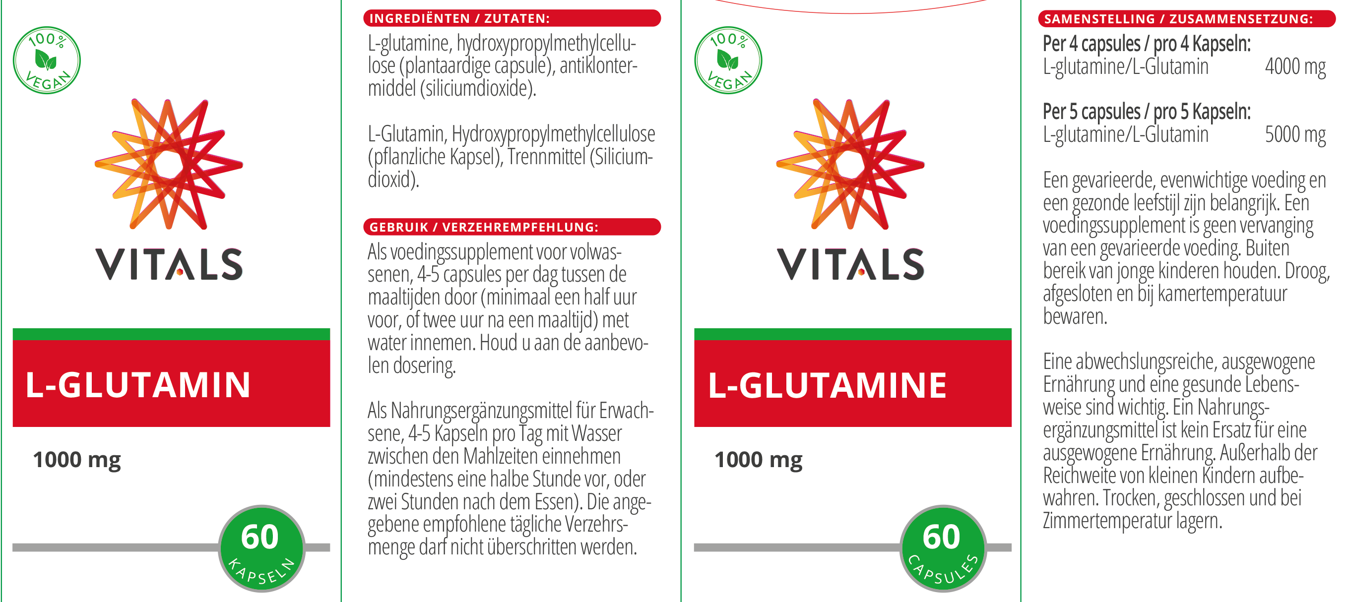Anschrift des Herstellers: Vitals Voedingssupplementen BV, Pieter Lieftinckweg 29, 1505 HX Zaandam, Niederlande. E-Mail: kundendienst@vitals.eu.