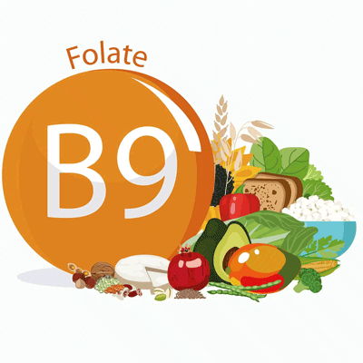 - Natürlich in Lebensmitteln (Folat): Vor allem in dunklem Blattgemüse wie Spinat und Salat, Hülsenfrüchten, Vollkornprodukten, Leber und Orangen