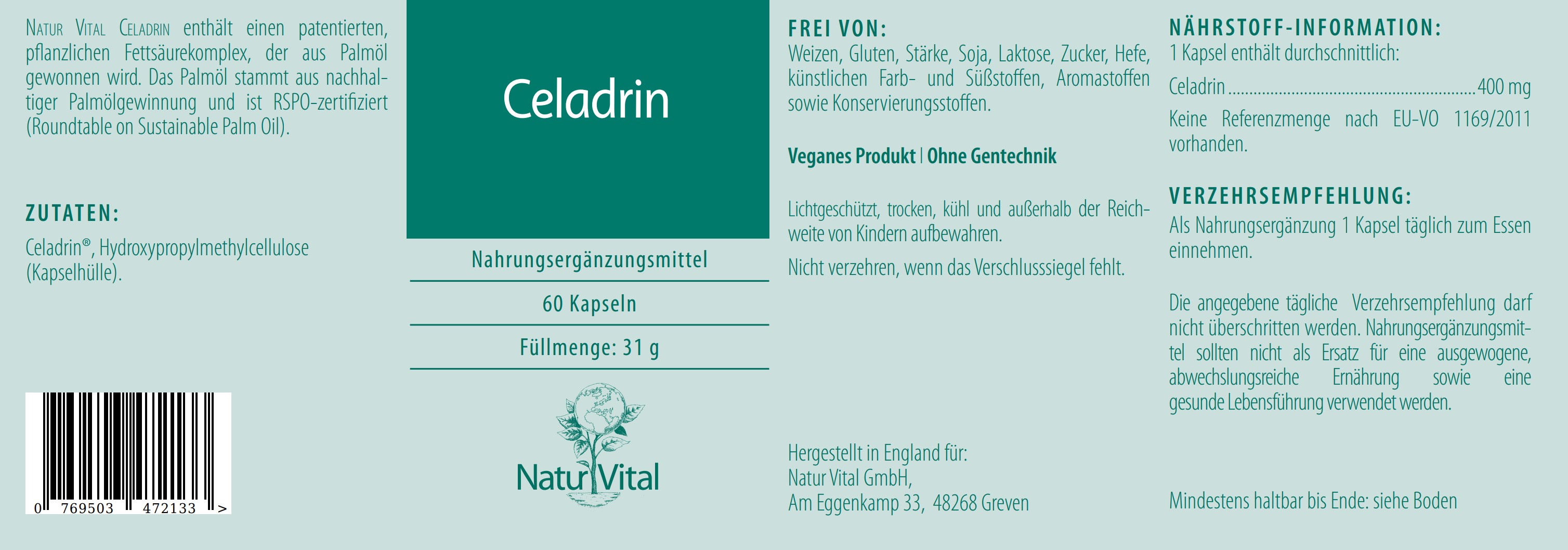 Vegetabiles Celadrin, Kapselhülle: Hydroxypropylmethylcellulose.