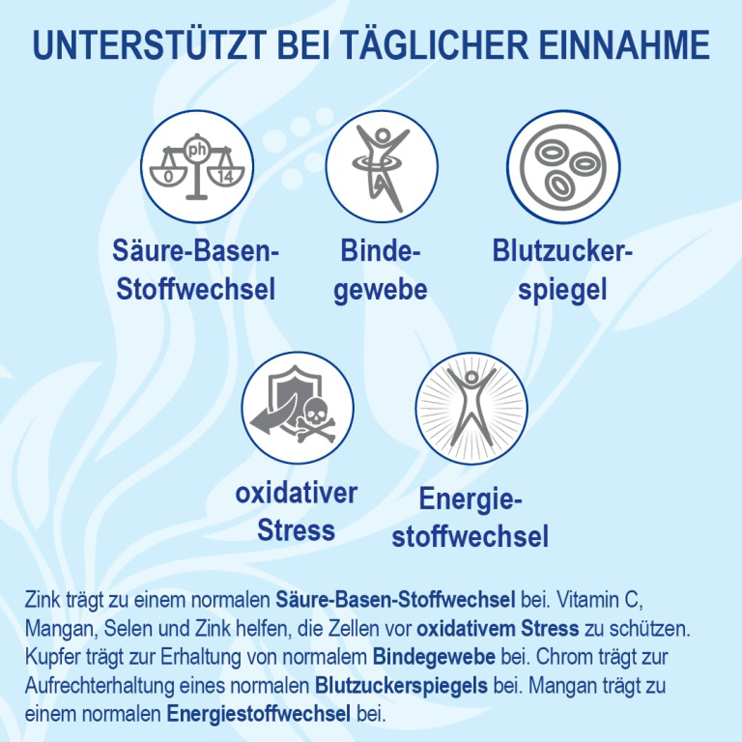 | Toepassing: | Bloedsuiker, Brein, Huid en haar, Botten en gewrichten, Zuren en Basen, Metabolisme |