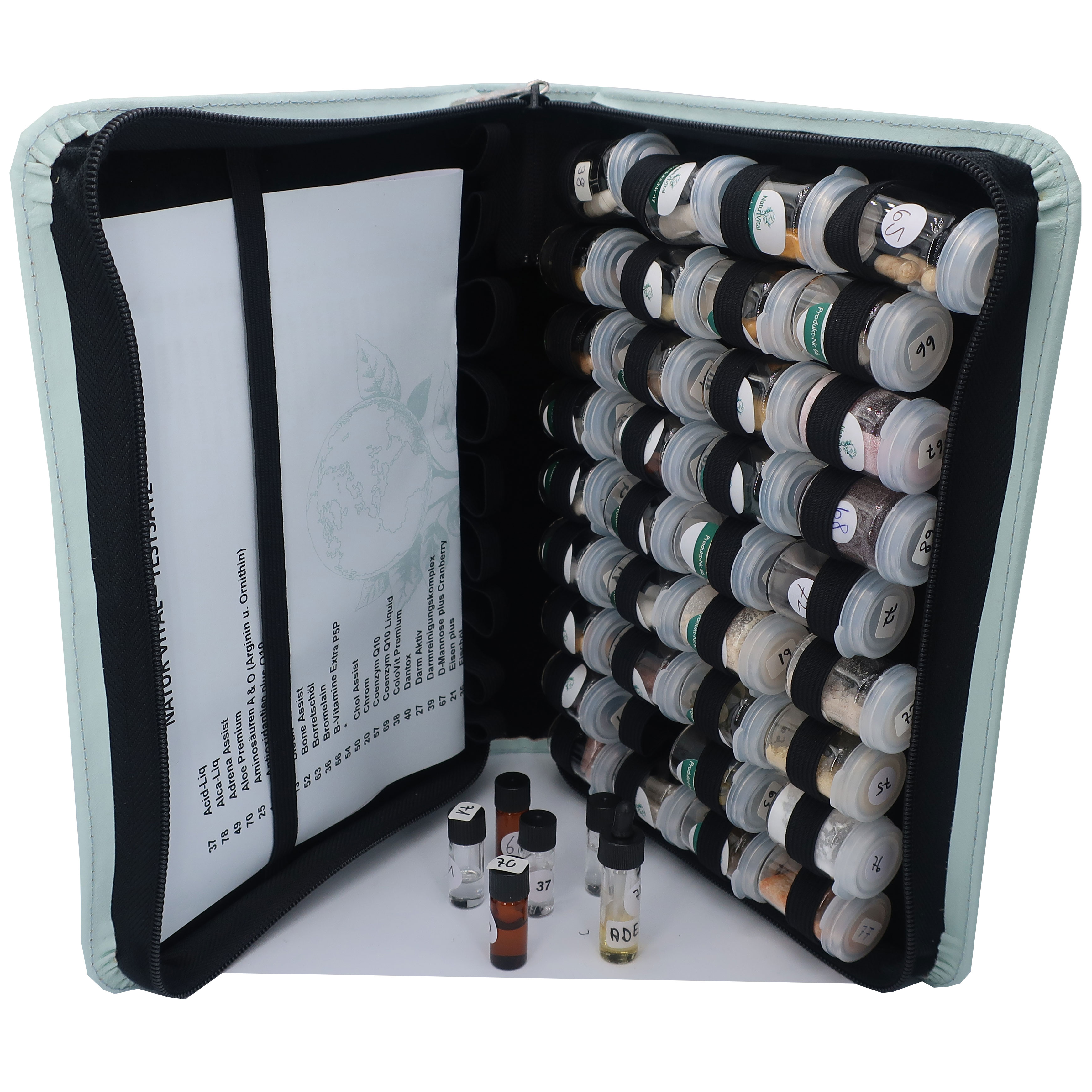 Deze basistestkit bevat kleine monsterhoeveelheden van alle Natur Vital producten voor energetische tests.