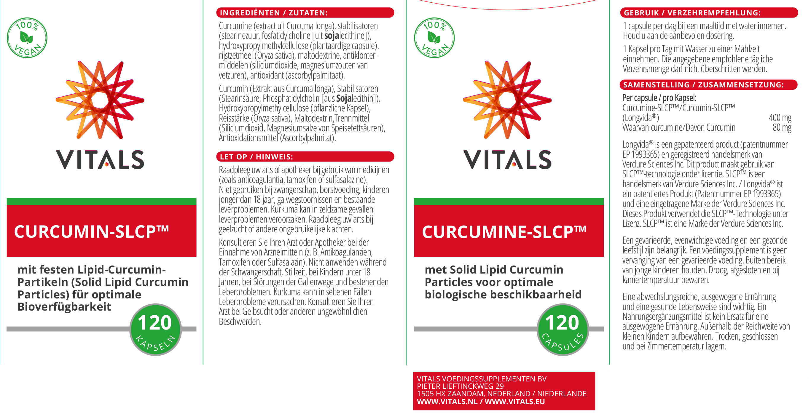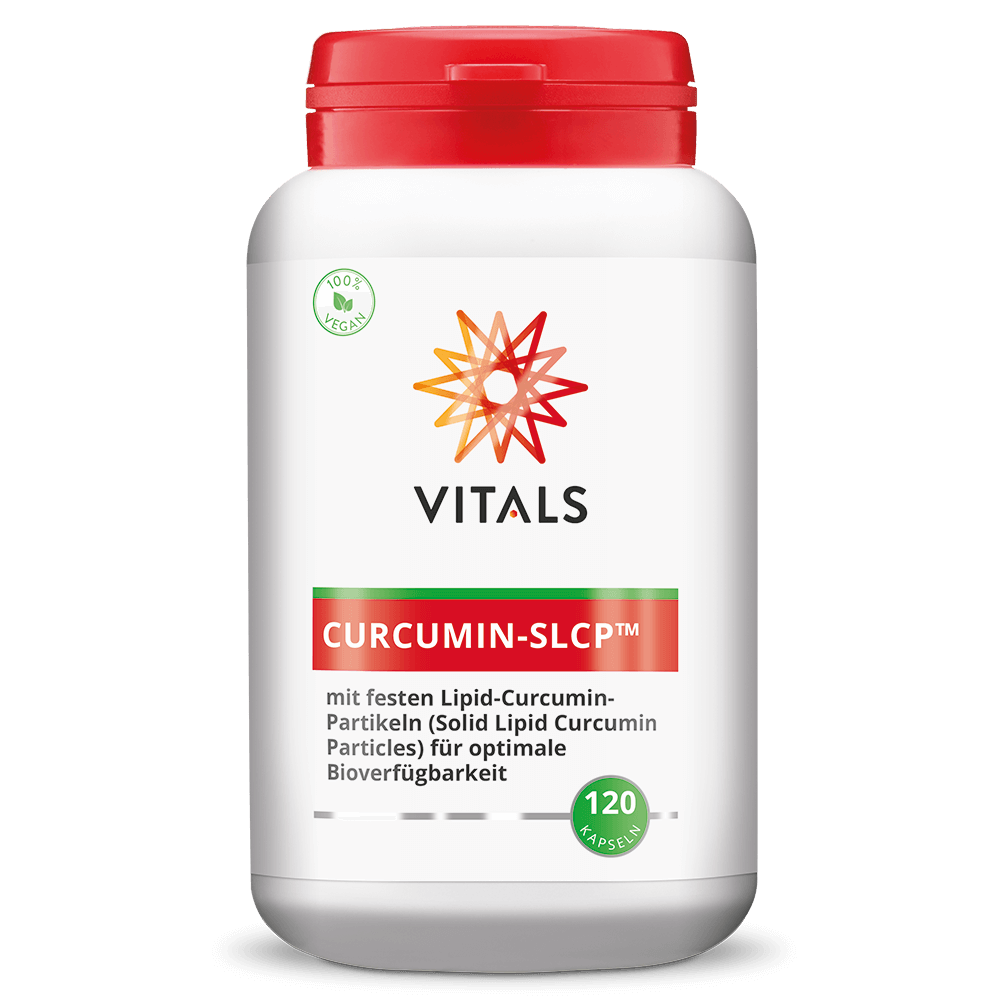 Die Probleme der Resorption und Bioverfügbarkeit zu überwinden, ist die bedeutendste Herausforderung bei der Entwicklung von Curcumin-Präparaten mit optimaler Wirksamkeit. Denn Curcumin in „unverarbeiteter“ Form wird nach dem Verzehr im Darm und in der Leber rasch in inaktive Metaboliten wie Curcuminglucuronid umgewandelt, die vom Körper schnell ausgeschieden werden. Nach jahrelanger Forschung und Kooperation mit der University of California (UCLA) ist es dem Hersteller von Vitals Curcumin-SLCP™, Verdure Sciences, gelungen, diese Probleme zu lösen. Dank ihrer patentierten Technologie haben sie die Resorption von Curcumin um das 65-fache und die Bioverfügbarkeit um das 285-fache gesteigert (verglichen mit Standard-Curcumin-Präparaten, die aus 95 % Curcumin bestehen). Nachdem zahlreiche unterschiedliche Formulierungen auf ihre Bioverfügbarkeit beim Menschen getestet worden waren, wurde dieser Durchbruch erzielt. Die effektivsten Resultate wurden mit einer Formulierung erreicht, die ursprünglich aus der indischen Küche stammt, in der Kurkuma beim Herstellen von Currypasten mit öligen Zutaten kombiniert wird. Das Curcumin-Präparat Longvida® nutzt sogenannte Solid-Lipid-Curcumin-Particles, bei denen Curcumin in einem Fettpartikel eingeschlossen ist, das aus drei langkettigen Fetten besteht, die auch in Lebensmitteln vorkommen: Phosphatidylcholin, Stearinsäure und Ascorbylpalmitat.