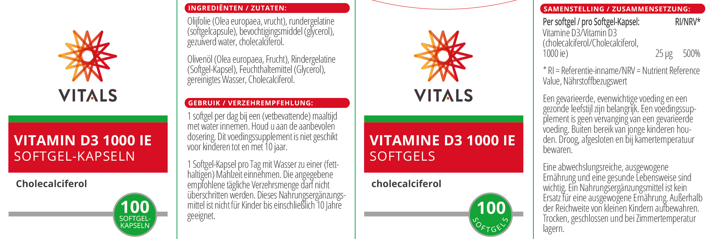 Dieses Produkt beinhaltet 25 µg Vitamin D3 (Cholecalciferol), gemessen in 1000 IE (internationale Einheiten), gewonnen aus Schafwollfett. Die Softgel-Kapseln mit Vitamin D3 (1000 IE) stellen eine hoch dosierte Nahrungsergänzung dar, um die eigene Produktion durch Sonnenlicht und die Nahrungsaufnahme zu unterstützen. Es ist am besten, den Vitamin-D-Spiegel messen zu lassen und die Dosierung an den Blutwerten auszurichten.