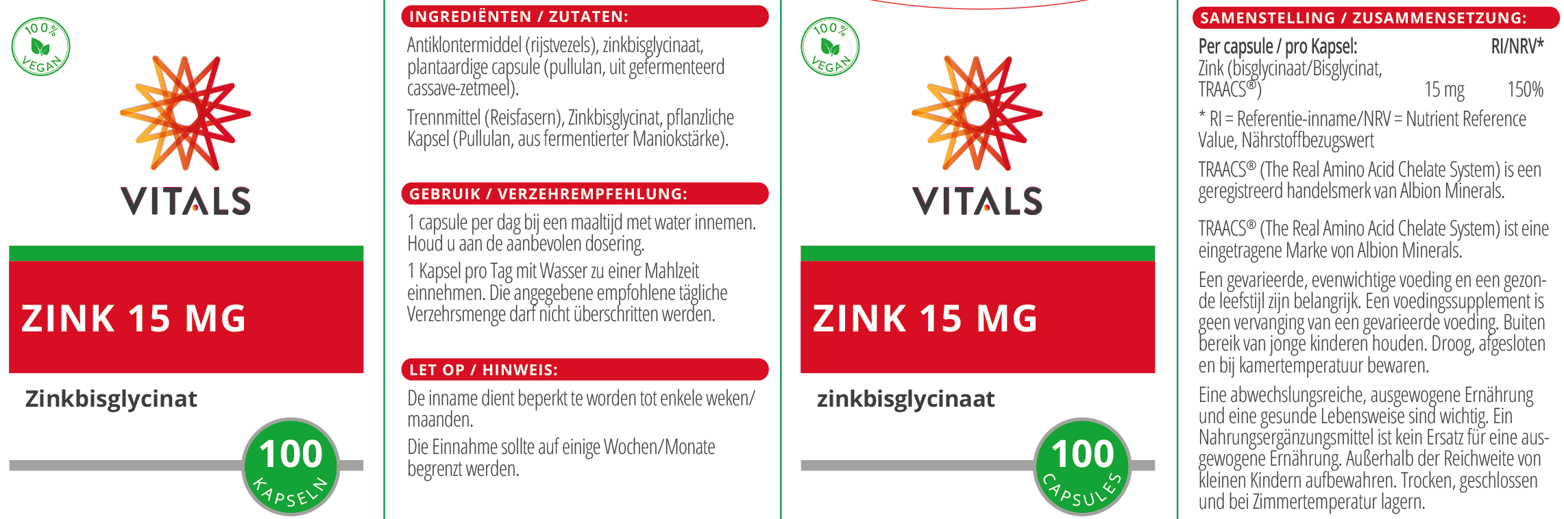 Anschrift des Herstellers: Vitals Voedingssupplementen BV, Pieter Lieftinckweg 29, 1505 HX Zaandam, Niederlande. E-Mail: kundendienst@vitals.eu.